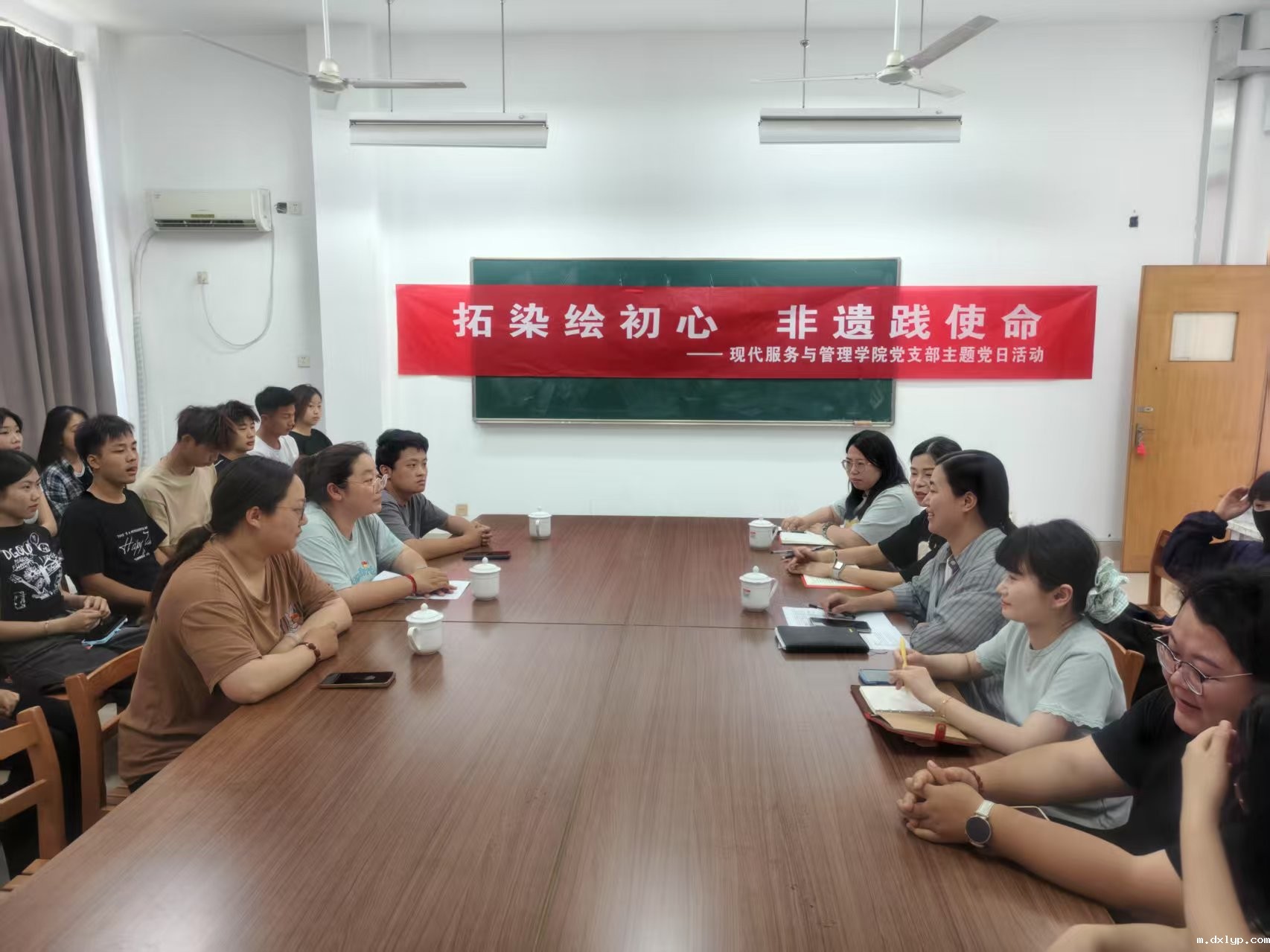 ——现代服务与管理学院党支部主题党日活动   为创新党员教育形式,推动传统文化与党性教育深度融合,5月21日下午,现服学院党支部举办了“拓染绘初心,非遗践使命”的主题党日活动...